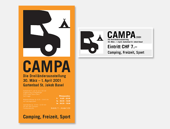 Gestaltung, Umsetzung und Produktion der Werbemittel. Campa war eine Messe für Camping, Freizeit und Sport. (für desktalk)