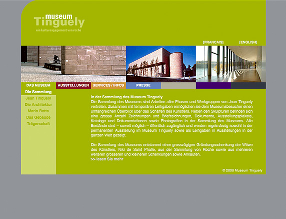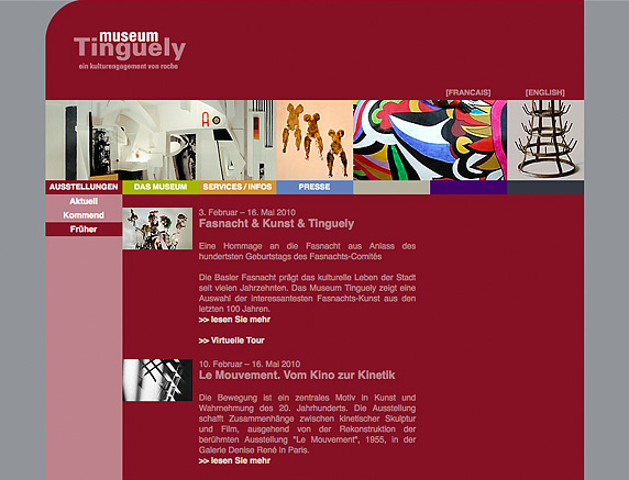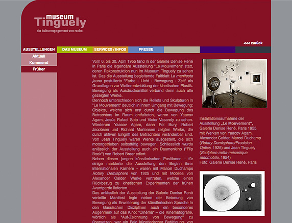 Design, Teile der Programmierung und Unterhalt der Website des Museums Tinguely. Das Museum Tinguely – ein Kulturengagement