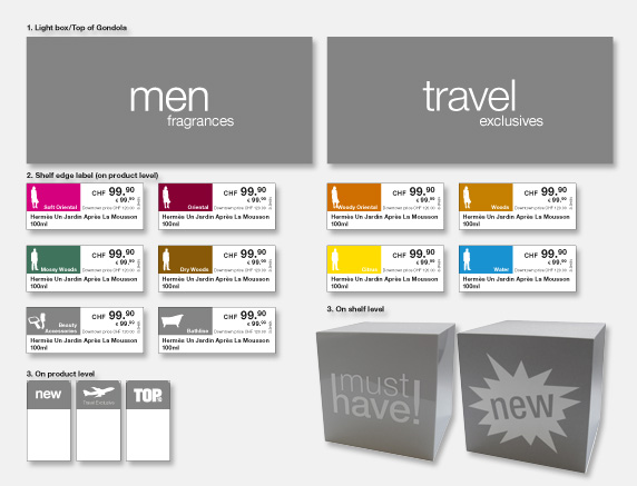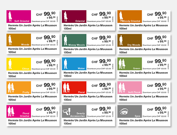 des Duftes, für wen der Duft ist oder der Verwendungszweck bei Kosmetik. Alles wird über einen Farbcode